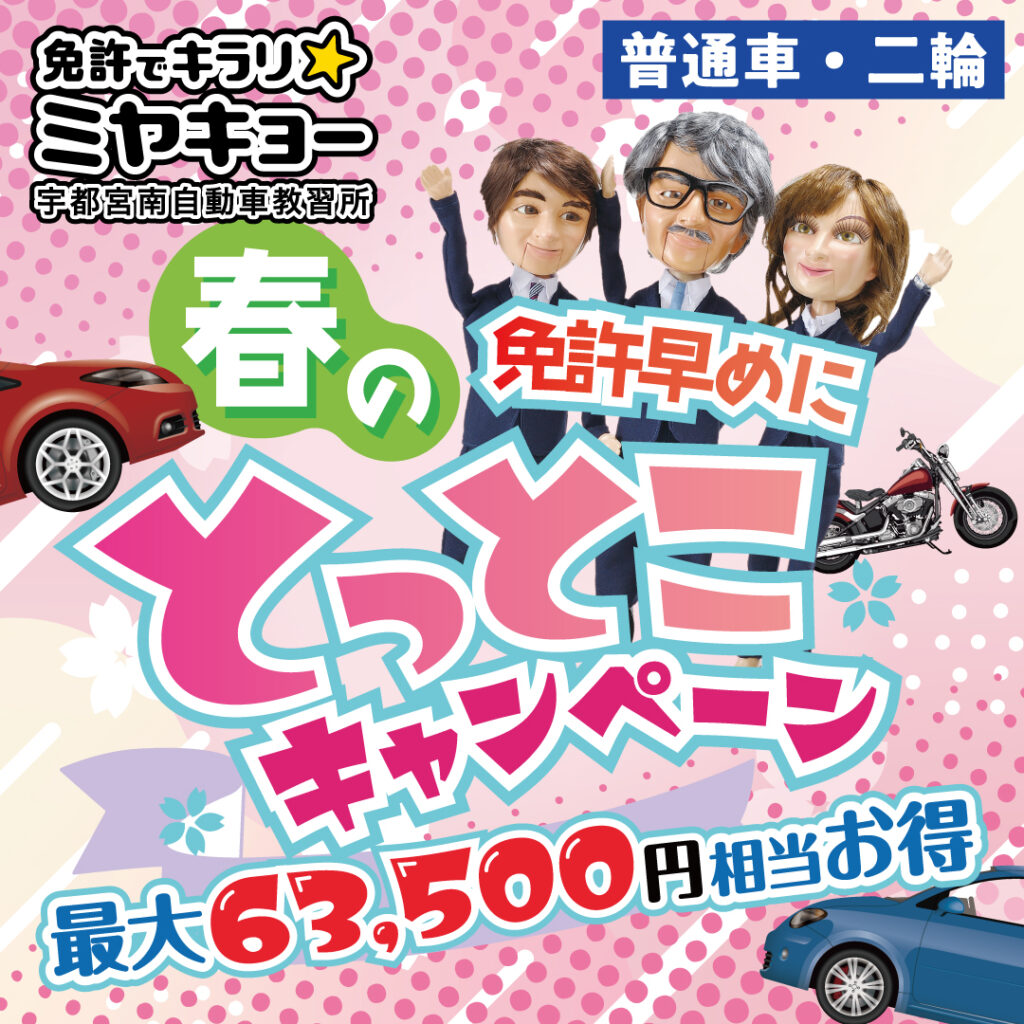 【最大63,500円お得】春の(免許早めに)とっとこキャンペーン🌸