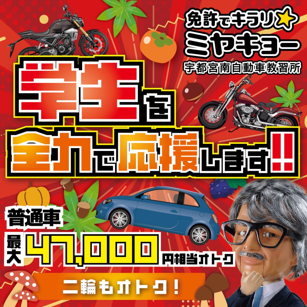ミヤキョーは学生の免許取得を全力で応援‼ 二輪もお得🏍